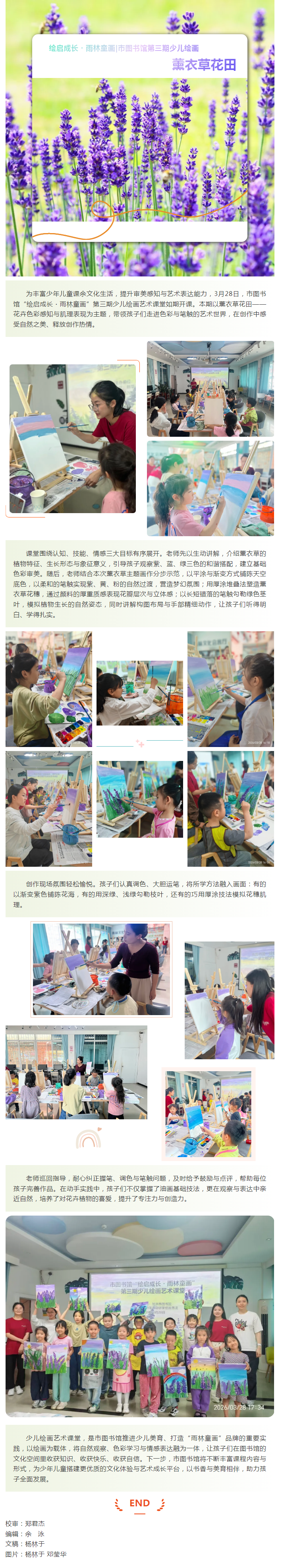 绘启成长?雨林童画|市图书馆第三期少儿绘画《薰衣草花田》艺术课堂圆满开展
